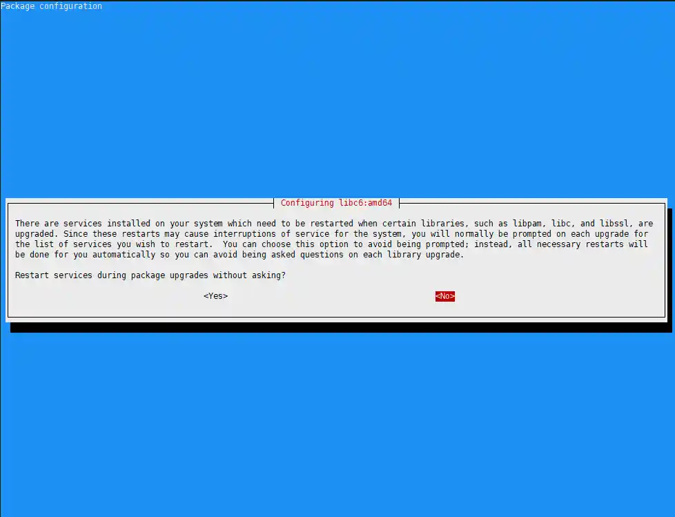 升级过程中会重启一些服务,Tab键切换到yes,确定